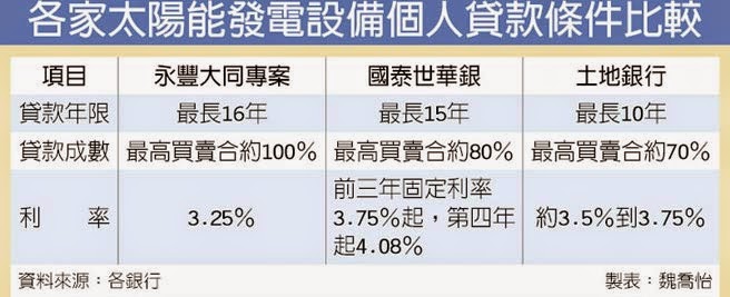 | 各家太陽能發電設備個人貸款條件比較 |